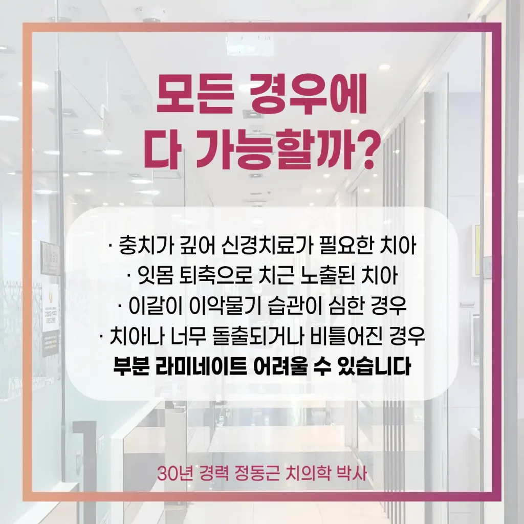 라미네이트 치료가 불가한 경우도 있으니 유의하셔야 합니다.